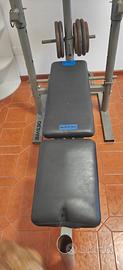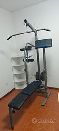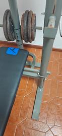palestra pesi con pesi la palestra non è in cattivi stati è stata messa su un garage all aperto necessità di qualche colpo di verniciatura, sedile un po' rovinato nella parte sotto come si nota da foto. pesi un po' arrugginiti. ma è ancora tutto bene funzionante. possibilità di trasporto nelle vicinanze .