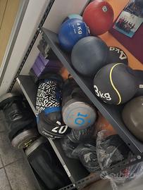 Manubri usati da 4 a 50 kg gommati a 1,5 euro a kg, anche singolarmente a 1,6 euro a kg. Inoltre manubri Panatta, Technogym e Teca, manubri tondi o esagonali, con rastrelliera portamanubri. Bilanciere olimpico (150-180-200-220 cm), parallele per dips da 40 euro, rack, portabumper verticali da 30 euro; portabumper a piramide, panca inclinabile con appoggi bilanciere a partire da 45 euro, panca inclinabile senza appoggi a partire da 35 euro, panca inclinabile professionale Technogym e Panatta. Bilancieri a partire da 10 euro, Bilanciere curl a Z, dischi a partire da 1,5 euro a kg, dischi gommati trigrip, coppia manubri ricaricabili a partire da 12 euro. Inoltre: sacco Fitboxe a partire da 50 euro, panca robusta multifunzione inclinabile con panca Scott e leg curl e leg extension, lat machine da 160 euro, panca addominale da 20 euro, Tbar, Trx da 15 euro; palle mediche e Fitball di diverse misure, Step da 12 euro; Spalliera a una campata pari a nuova 110; sacco da boxe a partire da 40 euro, parastinchi, paracolpi, guantoni, sagome e attrezzi di vario tipo per arti marziali, Kettlebell a a partire da 2,5 euro a kg; sand bag; Remoergometro professionale NO CONCEPT nuovo 700 euro, ciclette da 30 euro, Spinbike da 120 euro. Ellittica da 50 euro Tapis roulant elettrico da 180 euro; set Body POWER RACK A GABBIA con lat machine e pulley praticamente nuovo 340 euro con altri 20 euro kit per fare cavi incrociati. Portamanubri lunghezza 175 cm pari a nuovo 130 euro.