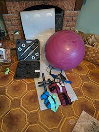Palla,pesi con bilancieri,tappetino, ellittica pesi da caviglie tutto in ottime condizioni