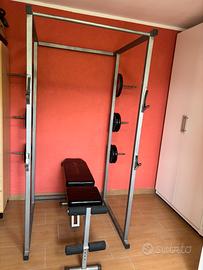 Come da titolo vendo palestra rack fatta fare da un fabbro,incluso panca carnielli ,3 bilancieri e 10 pesi da 10kg.