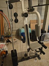 Palestra Weider è una stazione multifunzione completa che permette di allenare tutti i principali gruppi muscolari. Le sue caratteristiche principali includono la possibilità di eseguire esercizi per le gambe , il petto (chest press, pectoral machine), la schiena (lat machine), le spalle (shoulder press), i tricipiti e il petto insieme (dips)