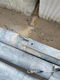 Vendo per conto di un amico, pali per campo da beach volley regolabili, 2 coppie, pali in metallo zincato a caldo, lunghezza 3,52 metri diametro alla base 12 cm diametro palo sopra 11 cm. Funzionati ma manca una manopola su uno dei pali, ma facilmente sostituibile. 200 euro la coppia.