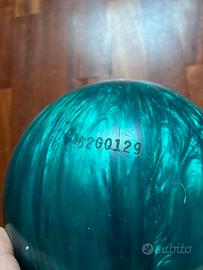 Palla da bowling usata, forata a misura, acquistata una ventina di anni fa e messa a riposo da circa 15. Peso 13 lb (5,9 kg).