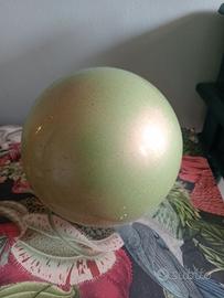 Palla da ginnastica ritmica di colore verde perlato con riflessi glitterati.