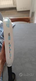 vendo come da titolo Pallap Power team... usata al max 10 partite alternandola con la mia vecchia pala. Ho voluto provare una forma differente dalla tonda, anche se maneggevole e non stancante non mi trovo come con la mia vecchia.. questo è l'unico motivo per cui la vendo. descrizione sito Pallap: Costruita con carbonio italiano 12K di alta gamma, abbiamo sviluppato questa racchetta avanzata per unire un'incredibile leggerezza e una dinamica, una sensazione e una durata di alto livello. La forma a diamante con telaio DUAL CARBON e la morbida schiuma EVA di alta qualità consentono di eseguire colpi potenti dall'alto o smash a tutta velocità. Per dare alla palla una rotazione e un controllo maggiori, la racchetta presenta la nostra texture HYPERSPIN 3D.