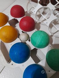 cestino con palle da Bocce vari colori con boccino modello anni '80