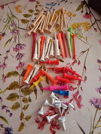 IDEALE PER GOLFISTI ALLE PRIME ARMI: visto che sicuramente seminate svariate palline ogni giro 🤓, vendo totale 76 palline da golf usate così suddivise : 45 callaway ( quasi tutte warebird) - 13 inesis 100 NUOVE - 7 Titleist - 3 srixon - 6 inesis varie - 2 Dunlop. le palle sono generalmente scritte e/o logate ma perfettamente in condizione di essere giocate. in più 50 tee varie misure ( driver - ferri lunghi - ferretti ) facendo i conti vengono a costare molto molto poco, l'ideale per perderle senza patemi d'animo 😀