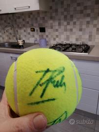 pallina da tennis atp 2025 con autografi di sinner de munier frizz e gli arbitri delle semif e finale