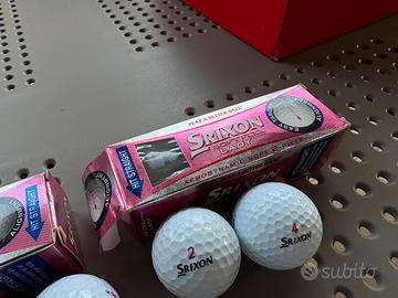 Vendo lotto di palline da golf Srixon originali, modelli misti, ideali per allenamento e gioco. 🔹 Modelli inclusi: Srixon AD333 Srixon Soft Feel Lady 🔹 Quantità e condizioni: Totale palline: circa 9 Palline usate in buono stato Loghi ben visibili, non rovinate Confezioni aperte / parzialmente usate (come da foto) Ottime per chi cerca palline di marca affidabili a prezzo conveniente. 📸 Foto reali del materiale in vendita.