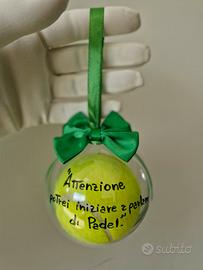 Attraverso un riciclo utile e divertente, sono nate delle palline natalizie di Padel, con scritte leggeri, ironiche e soprattutto personalizzabili. Scrivimi se vuoi sapere le frasi scelte da me o se vuoi che ne crei una tutta tua.