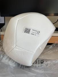 Pallone da calcio Adidas modello “Universadi”, misura 5 (misura standard ufficiale). Il prodotto è assolutamente nuovo, mai usato ed è ancora sigillato nel suo imballaggio originale in plastica con tutte le etichette attaccate. •Marca: Adidas •Modello: Universadi (Codice articolo: IW3729) •Misura: 5 •Colore: Bianco con l’iconico logo Adidas “3 Bar” grande in nero. •Materiale e Costruzione: Rivestimento resistente in TPU con cuciture a macchina per garantire ottima durata e tocchi precisi. Camera d’aria in butile. •Extra: L’etichetta riporta una garanzia di fabbrica di 2 anni sulla tenuta della forma e delle cuciture. •Pressione di gonfiaggio raccomandata 0.5 - 0.7 bar (7.3 - 10.2 psi).