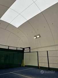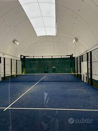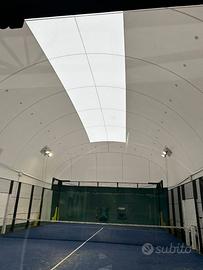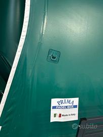 Pallone praticamente nuovo, montato nel febbraio 2024, della Prima Sport, modello specifico "Padel Box" per il padel per un campo singolo.