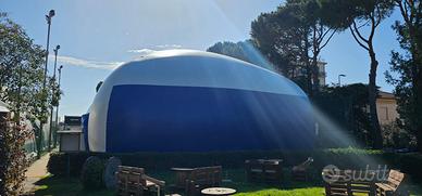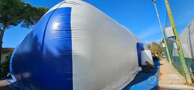 Vendesi pallone pressostatico a copertura di un campo da padel m. 14x22 completo di: uscita di sicurezza, 8 fari a led, porta girevole d'ingresso, generatore d'aria con di Inverter EXP80 completo con il bruciatore aria calda, motore d'emergenza/gruppo elettrogeno. (tutti i materiali sono usati ma tenuti bene, 3 anni di vita).