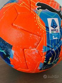 Pallone ufficiale Serie A Enilive stagione 2025/2026 PUMA football Fifa Quality Pro, il nuovo Orbita Hi-Vis di Puma di colore rosso acceso, il famosissimo pallone oggetto di pesanti critiche a casua del suo coloe che scompare in campo e si confonde con il prato per i daltonici e che è stato poi ritirato, preferendogli un "classico Bianco" Pallone assolutamente giocato (come tutti i miei palloni che sono in vendita) e con ancora i segni bianchi delle linee del campo da gioco. ATTENZIONE; le condizioni sono ottime i segni del "gesso" delle linee si toglie tranquillamente con un panno umido, ma questa è una scelta che lascio a chi acquista. Fornisco PROVE che il pallone sia giocato e foto sul campo e partita di riferimento a chi è seriamente interessato all'acquisto.