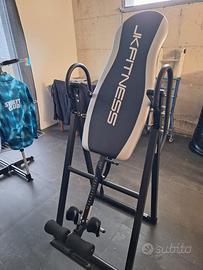 Panca ad inversione JK fitness ideale per decompressione della colonna vertebrale, allungamento muscolare e rilassamento della schiena, struttura solida e stabile imbottitura ergonomica e confortevole regolabile in altezza per adattarsi a diverse corporatura dotata di sistema di sicurezza, maniglie laterali e bloccaggio caviglie usata pochissimo in ottime condizioni, sempre tenuta in ambiente interno e asciutto perfetta per chi soffre di tensione e schiena e cervicale o per stretching e recupero posta allenamento