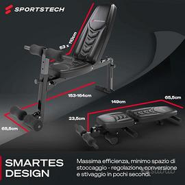 Panca palestra allenamento Sportstech BRT500 8in1 multi funzione con Design Unico e Imbottitura in Materiale Eva| Sistema Intelligente Pieghevole |Piedi Antiscivolo | Maniglie per Push-Up | Piana per Curl & Poster, Nero. π π¨ππ§ππ§ππππ‘π§π’: La panca fitness 8in1 offre possibilitΓ quasi illimitate quando ci si allena: Perfetto anche come trainer per gli addominali e la schiena, cosΓ¬ come per flessioni, bench press, leg lifts e bicipiti. Inoltre, Γ¨ incluso un grande poster di esercizi XXL con 12 esercizi efficaci. π ππ§ππ₯ππππ πππ ππ¨π¦πππ‘π’ ππ©π: Cuscino perfettamente sagomato e alla moda fatto di materiale EVA durevole e resistente agli strappi - idrorepellente e inodore allo stesso tempo π¦ππ¦π§ππ π π£ππππππ©π’ππ ππ‘π§πππππππ‘π§π: La panca pesi pieghevole BRT500 puΓ² essere convertita in un attimo. A questo scopo, la panca inclinata puΓ² essere piegata in pochi secondi. La panca per la pressa Γ¨ facile da riporre perchΓ© Γ¨ ultra compatta. π¨π‘πππ’ ππ₯π₯ππ§πππ₯π¦π¬π¦π§ππ : Passa rapidamente e facilmente tra la posizione di allenamento inclinata, piatta e negativa - la panca piatta Γ¨ ottimale per un allenamento equilibrato di tutto il corpo πππ¦πππ‘ ππ‘π§π-π₯π’π’π§: Gli ampi piedini gommati proteggono il tuo pavimento da fastidiosi graffi - anche presa stabile durante l'intero allenamento