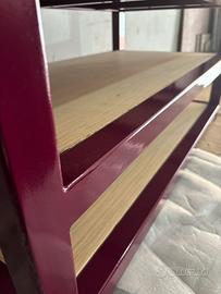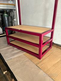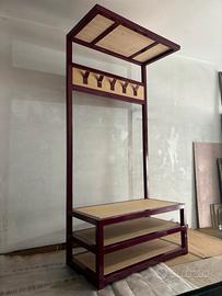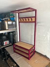 Vendo Appendi Abiti con panca scarpiera, realizzato in ferro verniciato a polvere colore RAL 4004 e legno listellare di rovere.