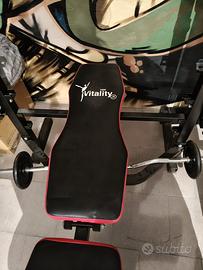 Vendo accoppiata panca multifunzione marca Sintesi e panca piana con pesi e bilanceri.