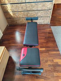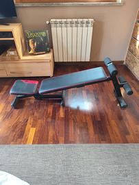 panca per esercizi da casa Domyos pieghevole e inclinabile + bilanciere da 8 kg + due dischi da 5 kg cad + palla medica da 5 kg. Mi trovo in zona Ponte di nona