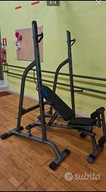 Vendiamo kit palestra con panca multifunzione inclinabile con modulo per leg estension e leg curl (65 euro), bilanciere (15 euro), coppia manubri (12 euro) con dischi (euro 1.5 euro a kg).