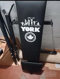 Panca fitness con schienale regolabile in inclinazione e supporto bilanciere. Struttura e imbottitura sana. Nel prezzo un bilanciere con ferma pesi e 2 dischi da 5kg. Disponibili 2 panche.