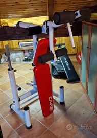 Vendo panca da body building con schienale regolabile, porta bilanciere regolabile e leg extension per gambe, panca ripiegabile salvaspazio. Si tratta di una panca estremamente robusta adatta ad un uso intensivo con pesi importanti. Come da foto la panca è perfetta senza segni di usura i cuscini schienale e seduta perfettamente integri. SOL0 panca 140 euro, solo sacco 25 euro.