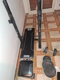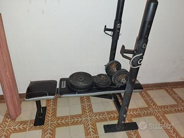 Panca da allenamento con aste manubrio e dischi in ghisa