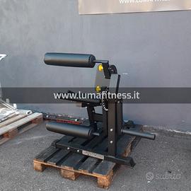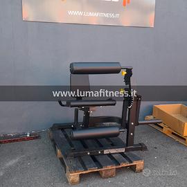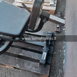 Prodotto: Home Fitness . Schienale ergonomico ed ampio regolabile orizzontalmente. • Pad di blocco gambe con lunghezza 51 cm regolabile su 5 altezze. • Cuscino di spinta con lunghezza 51 cm regolabile su diverse inclinazioni per adattare la macchina al tipo di esercizio che si vuole svolgere e alle diverse altezze dell’utilizzatore. • Prese ergonomiche ai lati per il massimo sostegno durante la fase di spinta/trazione. • Perno portadischi verticale per uno stoccaggio immediato. • Compatibile con dischi foro 50mm.