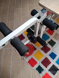 Panca completa di manubrio vari pesi n3 kg5 n4 kg2 n2 kg1 schienale e seduta in legno come da foto