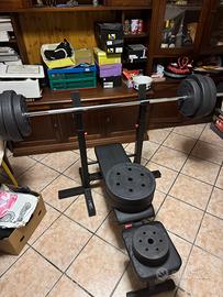 Vendo panca inclinabile con bilanciere e vari dischi per un torale di 100kg, usati pochissime volte