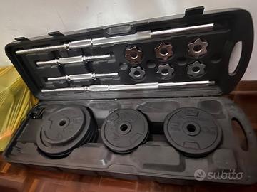 Panca vari livelli dotata di tutti i pesi e aste di varie misure