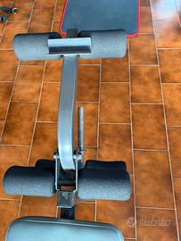Vendo per cambio panca, me ne serviva una che si inclinasse di piu: questa si inclina comunque a 30 e 45 gradi, ha il supporto per leg curl e leg extension e le dip bars integrate al rack per bilanciere, vendo insieme ad un bilanciere da 10 kg, preferisco non spedire meglio di persona