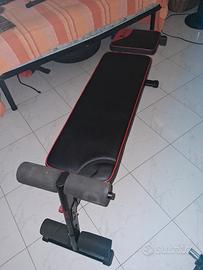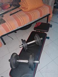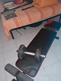 panca da palestra come nuova , due manubri con dischi e bilanciere (non visibile in foto ma presente). ritiro a xarico del compratore, zona rebocco -la spezia- primo piano.