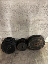 compresi dischi da 10 kg (2 pezzi), 5 kg (4 pezzi) , 2,5 kg (5 pezzi).
