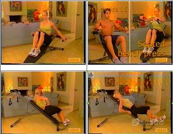 Solidità e compattezza! Cinque possibili inclinazioni dello schienale, postazione per addominali e opzione quadricipiti, per variare gli allenamenti di body-building 28 esercizi totali e guida DVD.