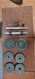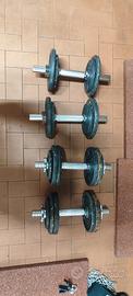 panca di decathlon, molto ben tenuta. kit di pesi con manubri.