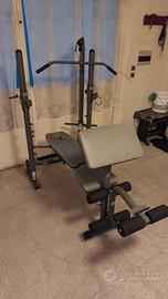 Vendo Panca per palestra Domyos BM470 ottima per panca piana e inclinata. Presenta accessori per leg extension e leg curl, supporto bicipiti e lat machine Solo ritiro a carico dell'acquirente panca professionale robusta perfettamente funzionante