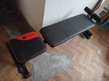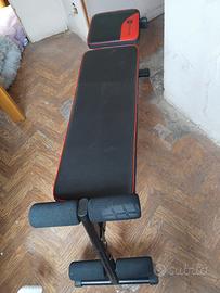Vendo panca Domyos ideale per addominali, tonificazione e allenamento a casa. Struttura stabile , imbottitura integra , rulli in gomma perfetti. Usata pochissimo, sempre tenuta al chiuso