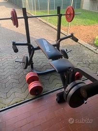 panca con bilanciare più dischi piu 2 manubri da 30kg +30kg sabia (1panca,1bilanciere ,2dischi 10kg in ferro 2dischi 5kg in ferro. 2dischi 10kg in sabbia, 2 dischi 5kg in sabia ) tutto a 220€.