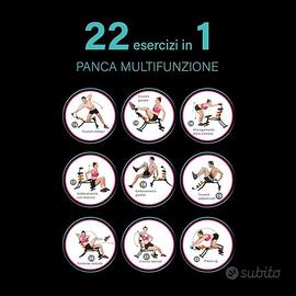 Power Fit Panca fitness multifunzione 22 in 1, sedile girevole, estensori per le braccia, schienale reclinabile, per allenare tricipiti, bicipiti, spalle, gambe, pettorali, addominali. Vendesi per inutilizzo. Ritiro zona Acilia-Eur.