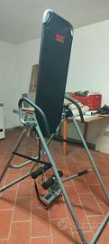 Questo oggetto è unapanca a inversione Weider, un attrezzo per il fitness progettato per aiutare a decomprimere la colonna vertebrale. Funzione:Permette di capovolgere il corpo in modo controllato, utilizzando la gravità per alleviare la pressione sulle vertebre. Regolazione:È possibile regolare l'inclinazione (spesso da 20 a 80 gradi) e l'altezza dell'attrezzo in base alla corporatura dell'utente. Utilizzo:Viene utilizzata principalmente per il sollievo dal mal di schiena e per il rilassamento muscolare