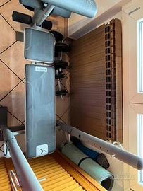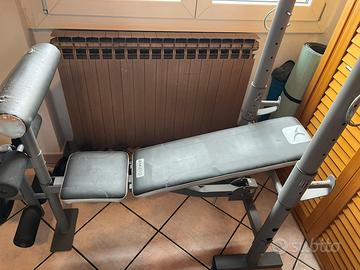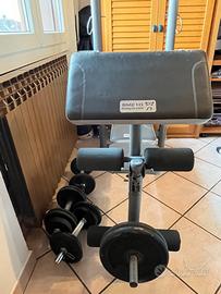 Panca inclinabile e declinabile, accessorio per leg axt. e per bilanciere e cuscinetto per panca scott.