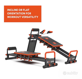 Panca multifunzione FITT Gym Attrezzo fitness 3 in 1, pieghevole. Perfetta per allenamento completo a casa. •Fitness completo del corpo: allenamento cardio, forza e flessibilità, tutto con un allenamento pieghevole a casa. Due angoli di utilizzo - piatto o inclinato - semplicemente fissando o rimuovendo la gamba inclinata. •Risultati a tutto tondo: scolpire, tonifica e definisce il corpo dalla testa ai piedi nel comfort della tua casa. Utilizza il proprio peso corporeo per resistenza, perfetto per qualsiasi età o livello di fitness. •Tre in uno: combina una palestra del peso corporeo, addominali e pilates Reformer tutto in uno per un'incredibile versatilità. •Design unico per la massima varietà: quasi illimitate opzioni di esercizio per mantenere i vostri allenamenti divertenti e freschi ogni volta. Il sistema Quad Pad in attesa di brevetto può essere fissato in diverse posizioni per raggiungere diversi gruppi muscolari. •Costruzione resistente: realizzato in acciaio di qualità da palestra, FITT Gym viene fornito quasi completamente assemblato. Può essere ripiegato fino a soli 30 cm di altezza per riporlo facilmente sotto il letto, contro la parete o in un armadio. Prezzo trattabile Ritiro Verona centro