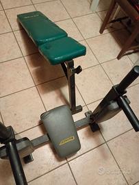 Panca multifunzionale, con stesse caratteristiche della foto ma con colore diverso completamente smontata ma in ottime condizioni...... Abbandonata in cantina.... aggiungo anche bilanciere..
