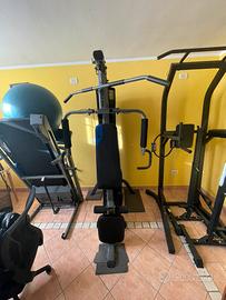 Panca praticambte nuova completa di accessori quali asta per lat machine e maniglia per bicipiti. Acquistata qualche anno fa da Decathlon. Presenti 3 carrucole, la seduta è staccabile.