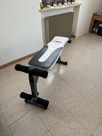 Panca utilizzabile come panca piana e panca addominali, regolabile su 4 livelli. Telaio in tubi d'acciaio da 50mm, schienale imbottito e rivestito.