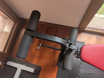 Panca pesi multifunzione Marbo Sport MS-L 114 + add-on originale Marbo per leg extension/leg curl. Seduta e schienale perfetti, perfettamente funzionante e sempre tenuta all'interno, unici segni presenti sul tubo porta dischi, come da foto. Scrivete pure per domande o per visionarla.