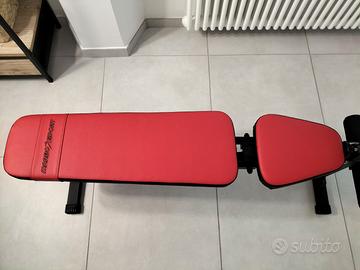 Marbo sport, panca pieghevole multifunzione regolabile sia seduta che schienale serie MS, con lat machine (presa alta e presa bassa) e attrezzo gambe (leg extension/leg curl). Condizioni eccellenti, acquistata e quasi inutilizzata. Vendo in blocco, il prezzo a nuovo è di circa 450/480 euro.