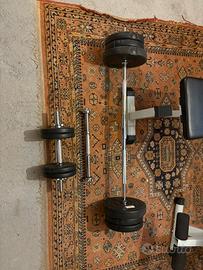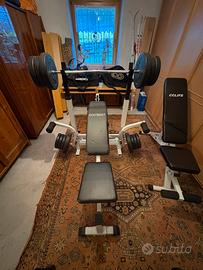 Vendo una panca multifunzione e una panca regolabile per Pesi. +manubri corti +manubri lungi + set di pesi