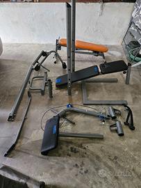 Vendo panca multifunzione modello Domyos BM350. Schienale e seduta regolabile. Lat Machine con sbarra, corda, panca scott, leg ex ecc... ecc...